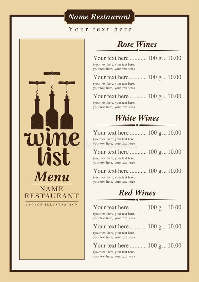 Wine List Stock Vector - Image: 59094409 via dreamstime.com